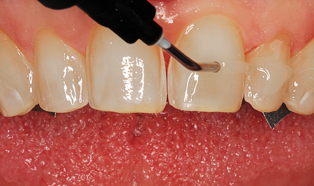 Recently, I watched a YouTube video where Dr. Michael Apa of New York City illustrated a multiple placement technique using a flowable composite as the luting agent and placing it directly on the teeth instead of inside the veneer. When I tried the technique, I found it to be more efficient than the technique I outlined above. The fact that the veneer can be carried to the mouth dry reduces the possibility of mishandling or dropping.