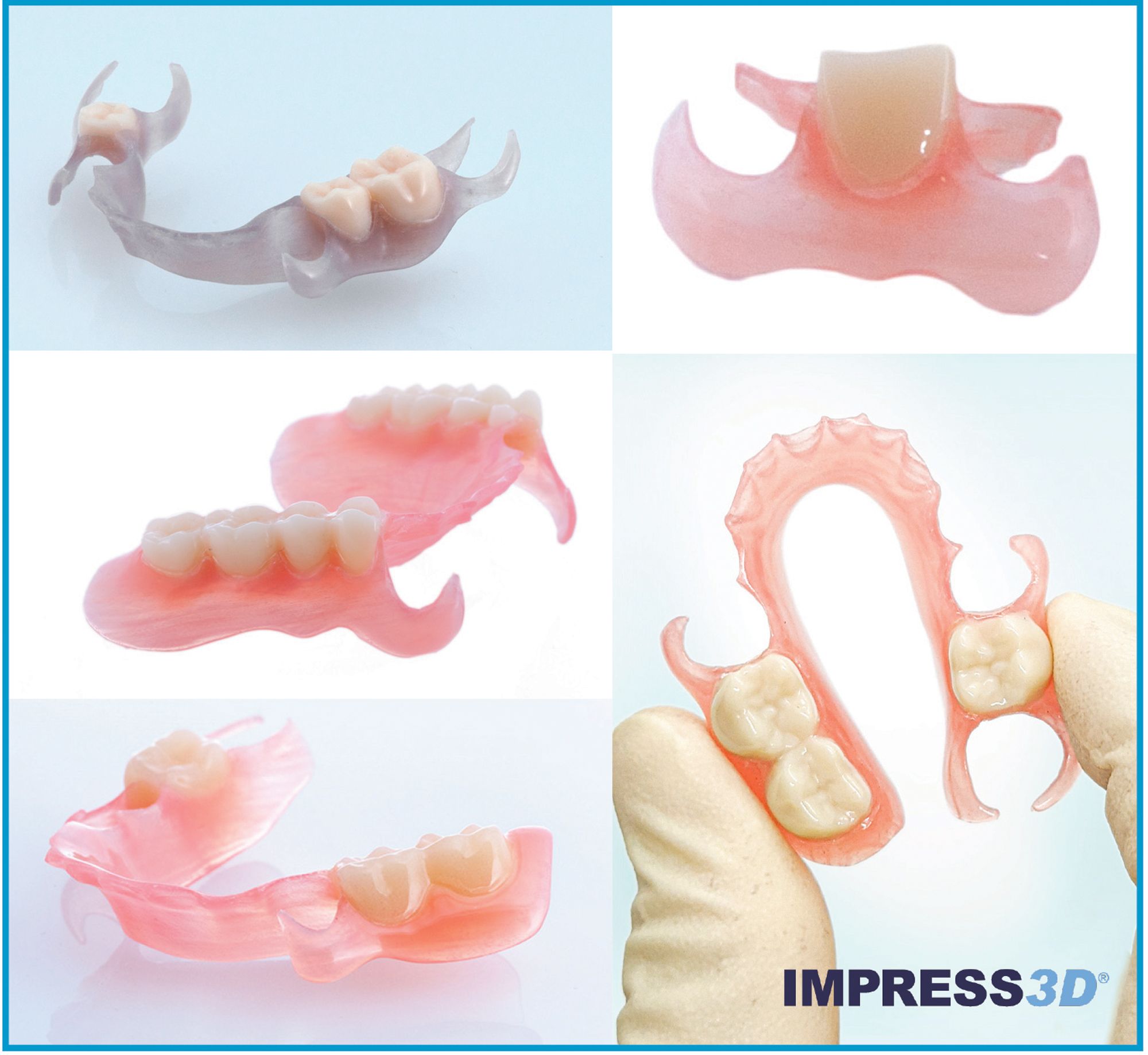 Digital design and 3D printing are said to be more precise and lead to a better-fitting appliance. IMPRESS3D uses patent-pending processes to ensure the strongest bond between the teeth and the partial denture. Proprietary software from IMPRESS3D enables dentists to sign up, upload, and submit a case in under 3 minutes and receive a fully finished, high-quality Valplast partial requiring little to no adjustment in less than a week.