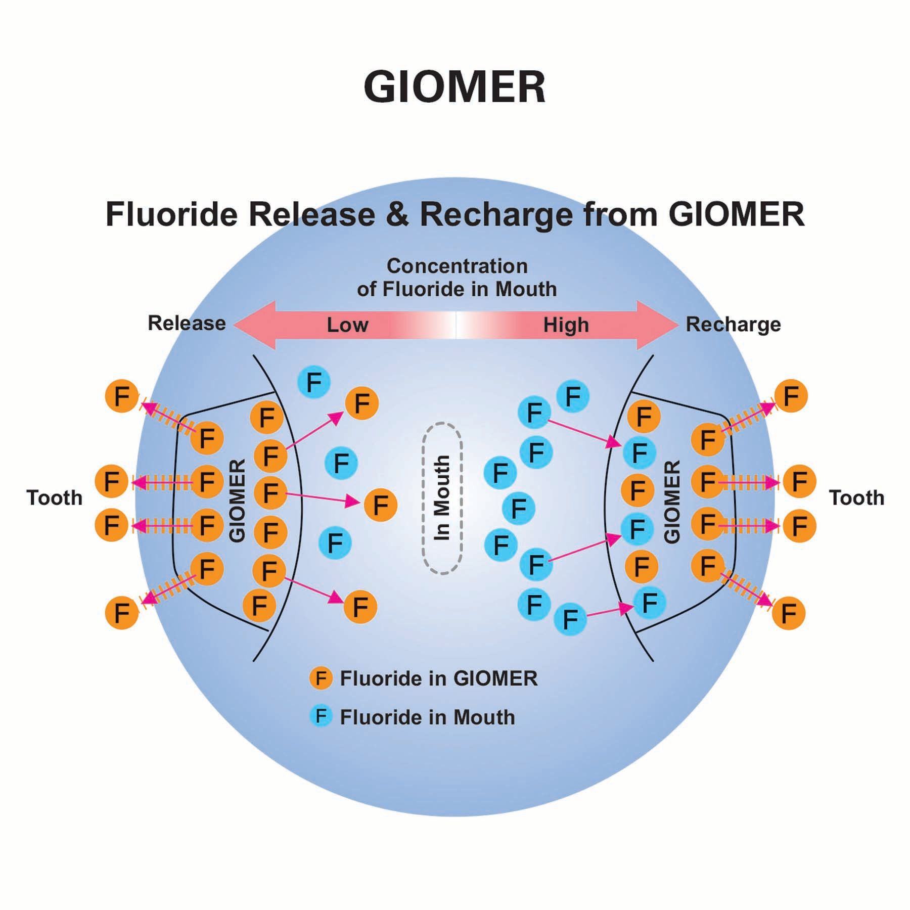 Shofu: Giomer Technology is a proprietary filler particle engineered and manufactured by Shofu Dental for use in our restoratives, preventatives, and cements. Unlike inert products created by other name-brand competitors, Giomer products have been proven in numerous clinical and laboratory studies to reduce secondary caries, neutralize acid, minimize sensitivity, and strengthen tooth structure through their release and recharge of fluoride and 5 other healthful ions for the life of the restoration. For decades, Shofu has been the leader in the advancement of bioactive dental materials to fulfill our mission of helping clinicians to “create healthy and beautiful smiles all over the world.”