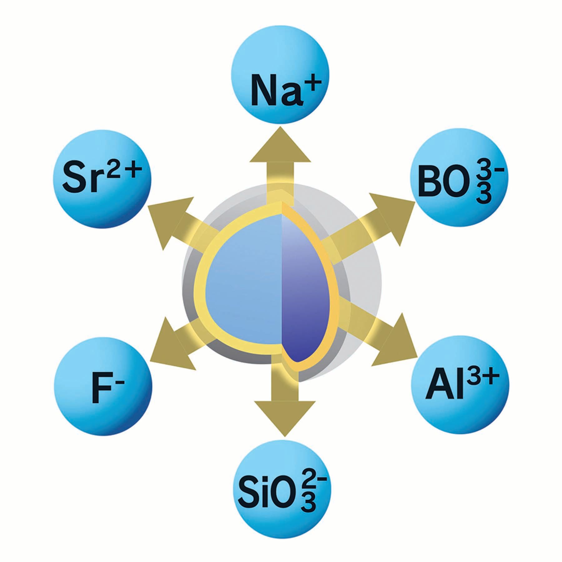 Shofu: Based on the technical knowledge of each element, the bioactivity of each ion listed below is well known in dentistry and medicine. Here is a list of the individual ions released and recharged by the Giomer particle with the healthful features of each.