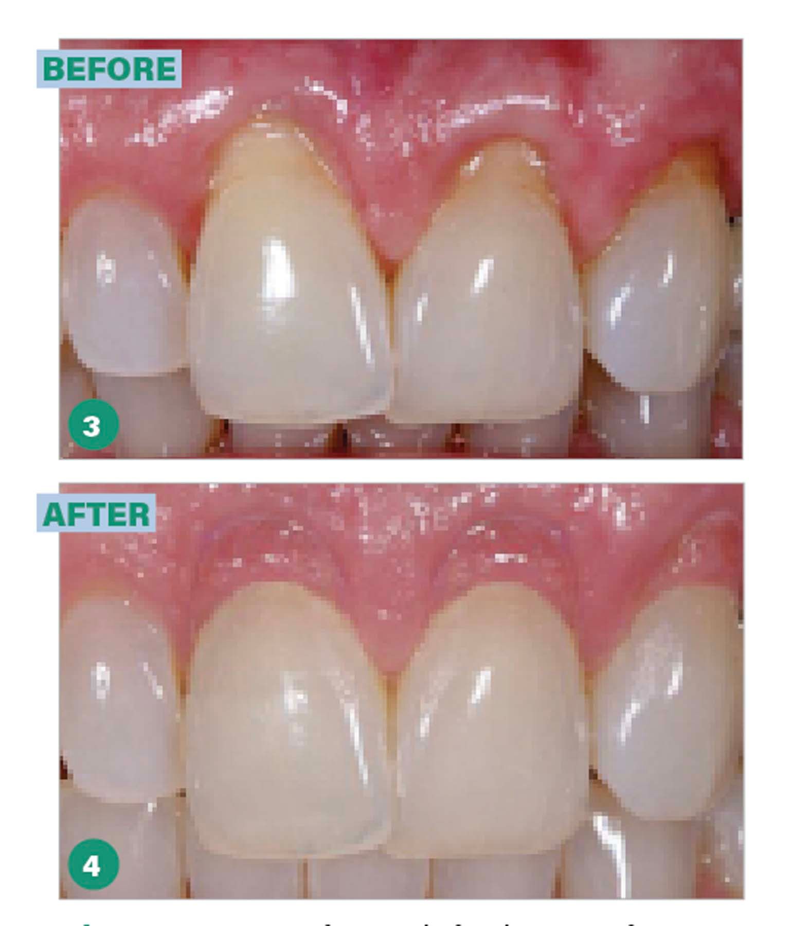 Figures 3 & 4. Before and after images of a case using Beautifil II Gingiva from Frank Milnar, DDS, AAACD.