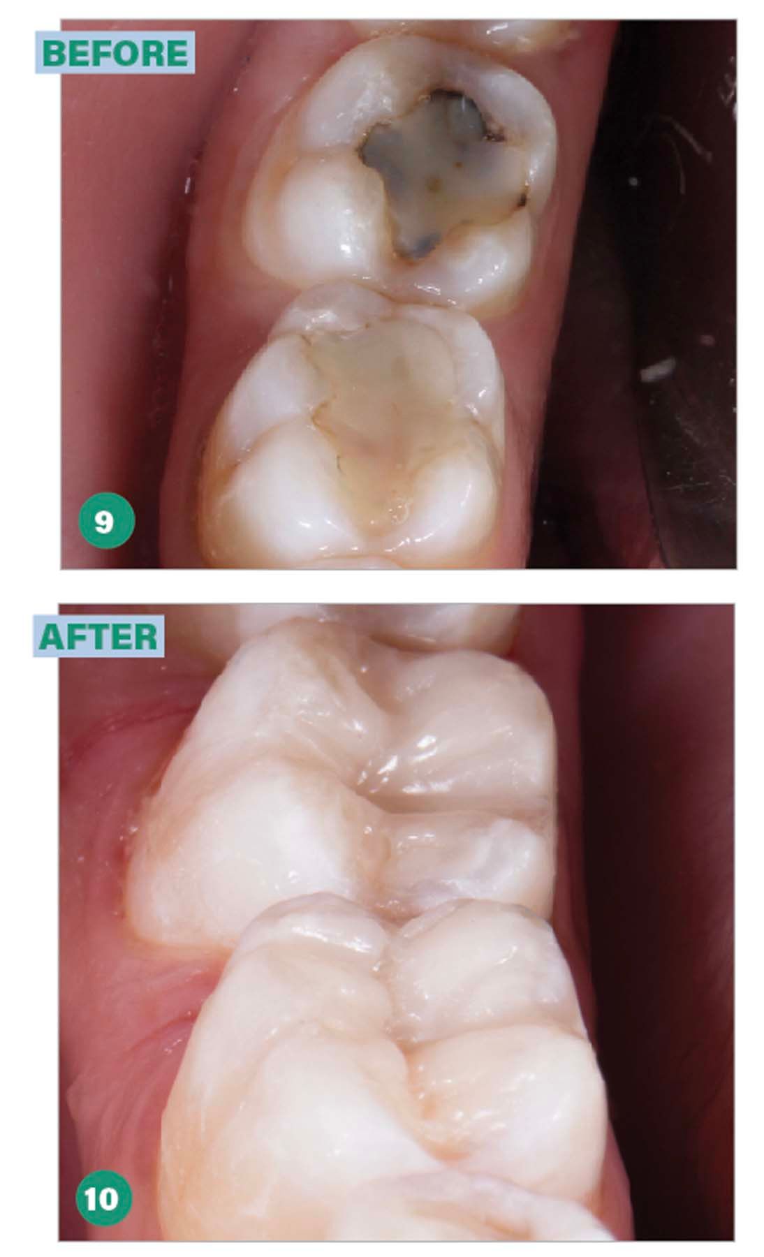 Figures 9 & 10. Flavio Henriques, DDS, MS, PhD, used Beautifil II LS for this restoration.