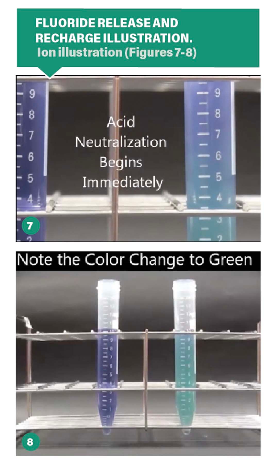 Figures 7 & 8. Giomer Technology features fast acid neutralization. | Image Credit: © Shofu Dental Corp.