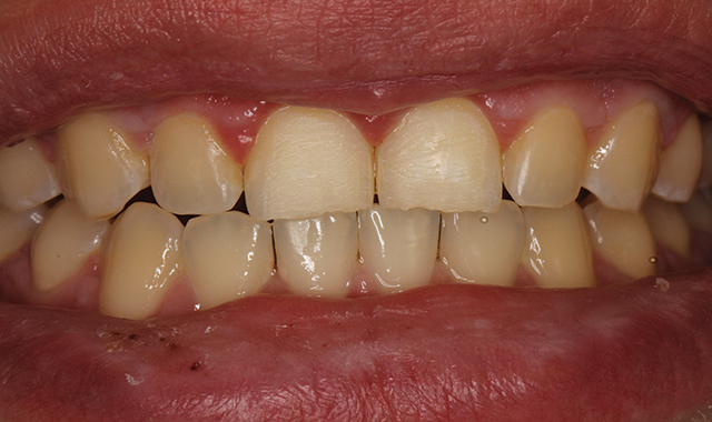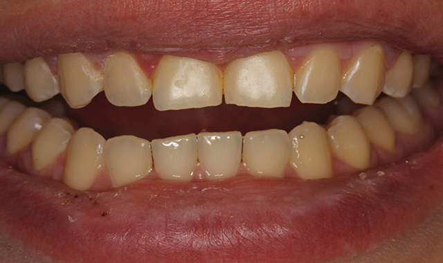 A post-orthodontic direct composite case is an example of enamel bonding, as the discrepancy in the incisal edges are limited to the patient’s enamel (Fig. 1).