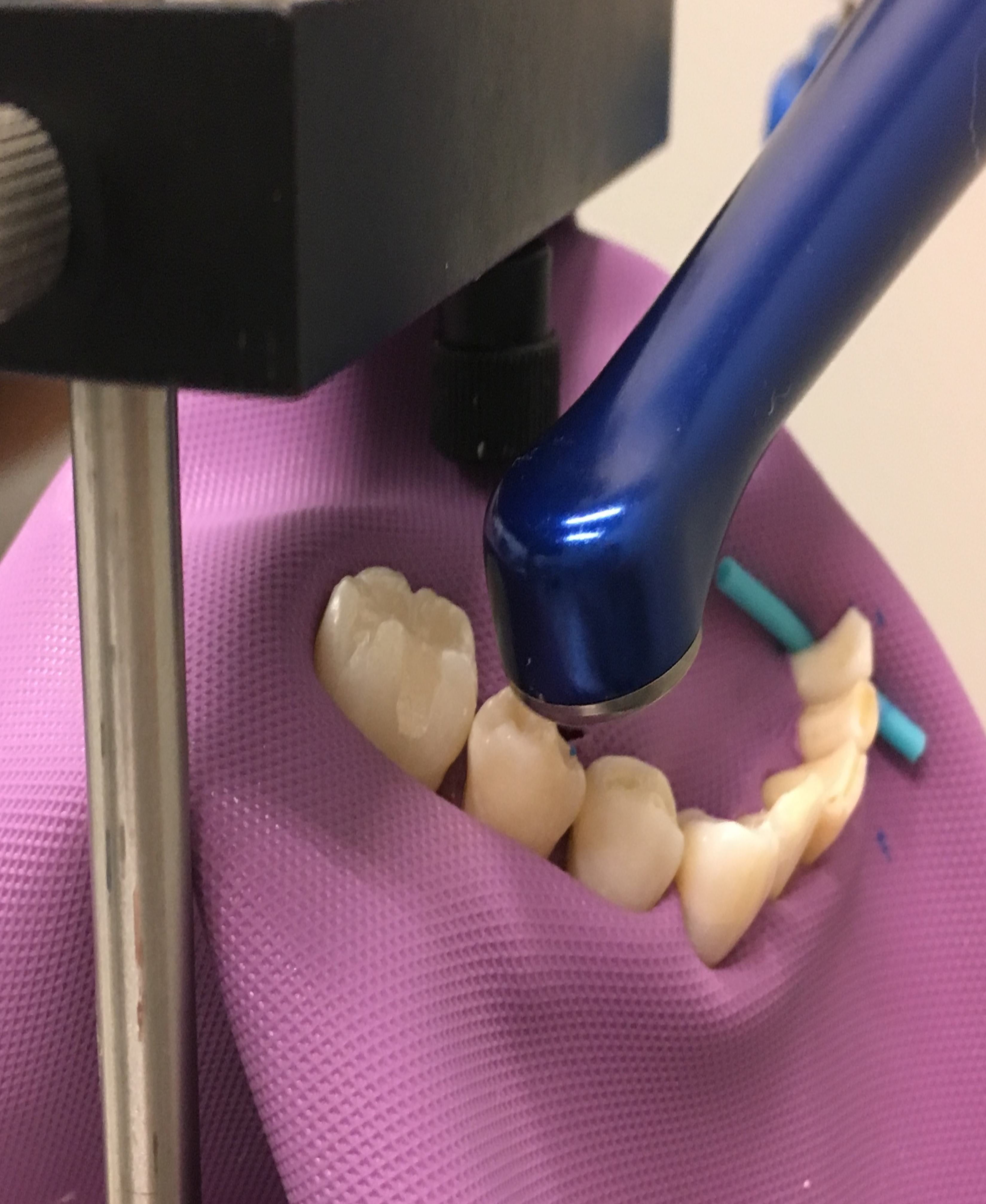Image of configuration set up to measure the possible of direct exposure while the curing light is positioned behind the upper incisors.