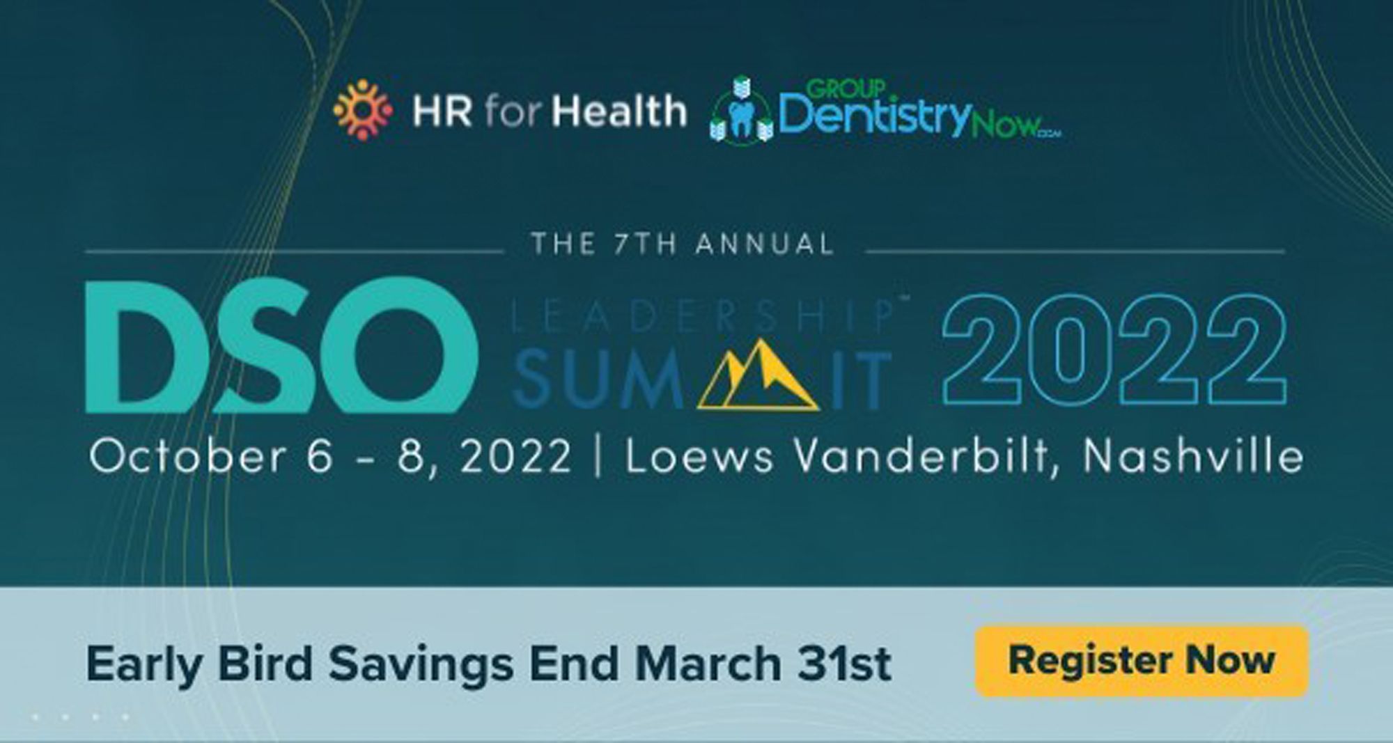 HR for Health and Group Dentistry Now has announced that registration for its 7th annual DSO Leadership Summit is now open. The 2022 DSO Leadership Summit will take place October 6-8 in Nashville, TM, and registration is open to dental group and DSO executives, owners, investors, and industry partners. It’ll be held in a new location this year at the Loews Vanderbilt.