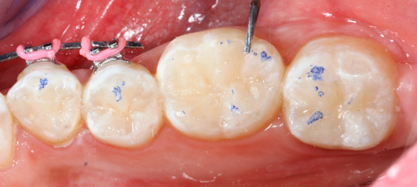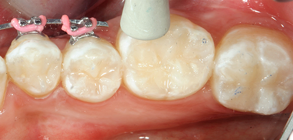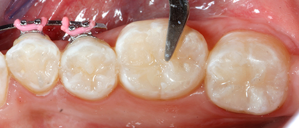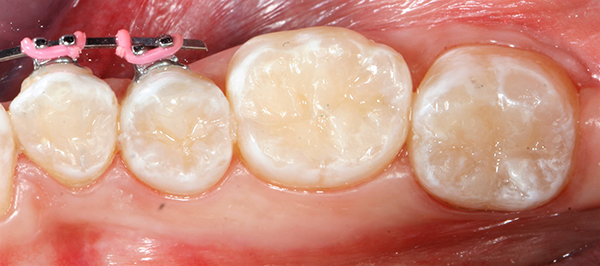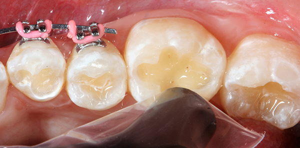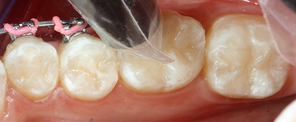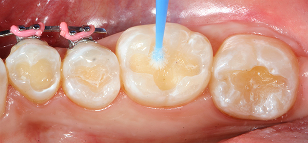 I used OptiBond All-In-One self-etching adhesive because it combines the ingredients needed for etching, priming and bonding into a single adhesive solution, thereby eliminating separate etching and priming steps of the bonding process.3 It’s extremely easy to use and its bond strength is consistent. I’ve had no reports of post-operative sensitivity using this bonding method.