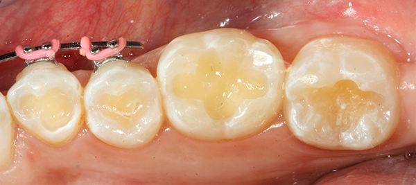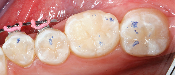 A 25-year-old female presented to the office with complaints of staining on her posterior teeth and sensitivity to sweets. Upon clinical and radiographic exams, decay was diagnosed in the occlusal grooves of most of her posterior dentition.