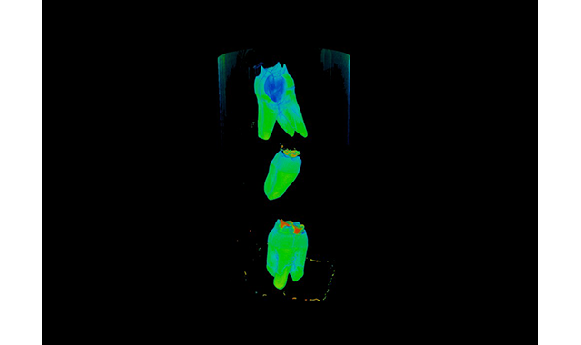 Esteban Florez is using the IMAGING instrument at HFIR to study a small collection of human teeth that had been restored either with a dental amalgam or a resin composite. These materials were bound to the sample tooth structures using his experimental dental adhesive resins, which contain varying concentrations of metal oxide nanoparticles.