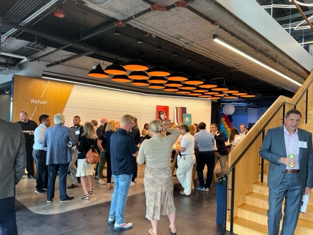Thursday’s sneak peek at TAG U closed out with a reception on the 15th floor—the tour included a stop at the interactive studio on the 10th floor—and will be followed by an official opening later this month.