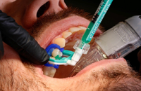 Removal of excess resin. After one minute remove the applicator and clear any excess material from the site using dental floss or tape (Fig. 12).