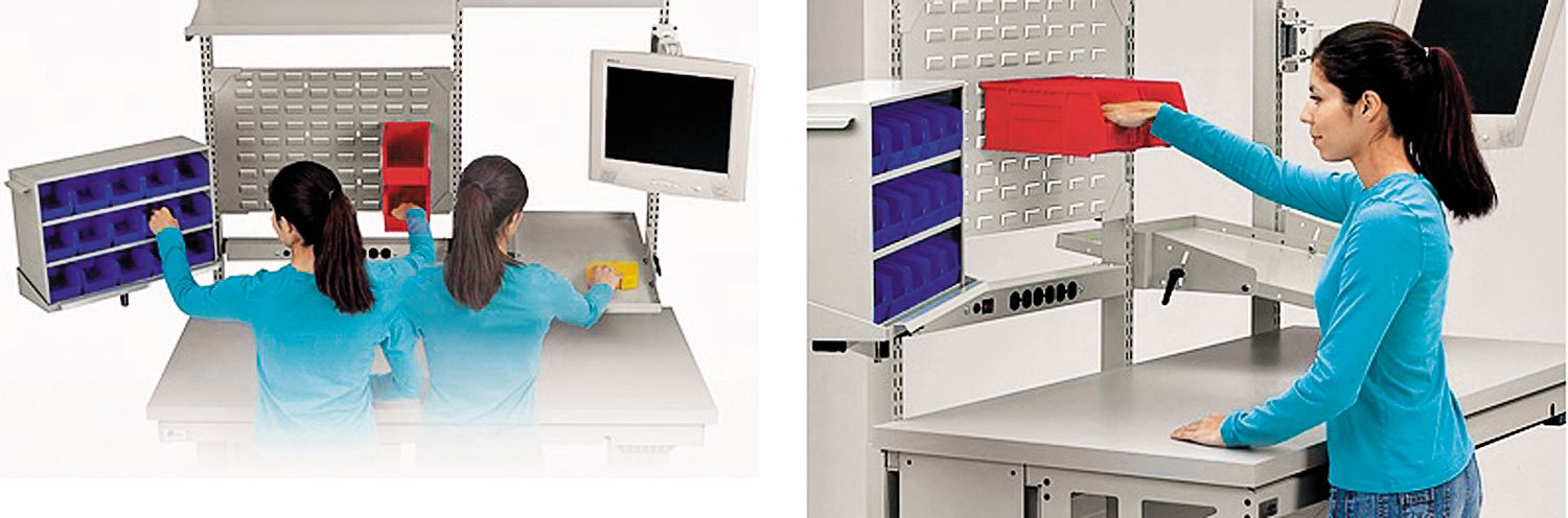 Technicians come in all shapes and sizes, so make sure they can raise, lower, or change the tilt angle of workstation shelves; add or remove shelves; change the height or tilt the angle of work-surfaces; change the height or direction of lighting; raise or lower the height of footrests; and mount or relocate tools, equipment, and storage on either side of a workstation.
