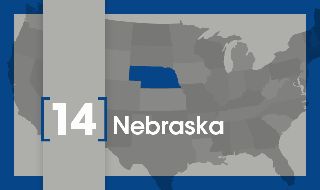 Dentists may want to follow in the steps of Lewis and Clark in their exploration of 14th-ranked Nebraska. With mid-table rankings oral health and number of people visiting the dentist, Cornhuskers ranked 11th overall for good dental habits. Lower median incomes balanced out with a low cost of living, leaving residents with good overall well-being. And with a noteworthy fifth place finish for fewest number of people on Medicaid, life on the prairie has never looked better for dentists!