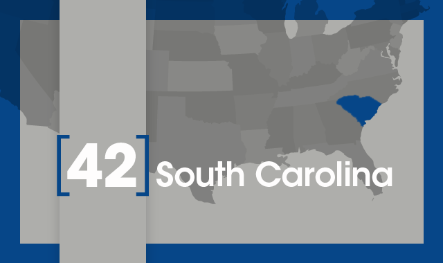 With schools like the College of Charleston and Clemson University, it’s not surprising that South Carolina ranks 10th in education. How did the Palmetto State fare in the other categories? Not so well. The Deep Southern state ranks low in dental habits, visitors, and safety and crime.