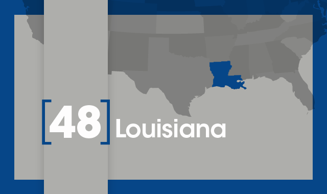 Known for its derby races and mint juleps, Kentucky fares well in cost of living, safety and crime, and uninsured rates. But the Bluegrass State’s rankings plummet for the remainder of the categories, making it fall behind the rest of the pack in this race.