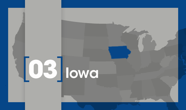 Iowa: 75% vowels, 100% awesome for dentists. Although it’s dropped one slot from its number two ranking in 2015, Iowans boast the third-best dental habits in the country. While the Hawkeye State ranks in the middle of the pack for median income and education levels, high insurance percentages and low crime statistics contributed to the state’s number three ranking. Iowa ranked 12th overall for dental visits and finished 14 out of 50 for general well being, bumping this hearty Midwestern land to the number three slot.