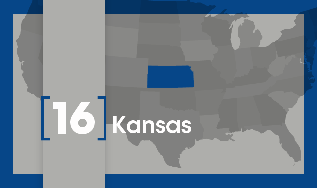 The fine folks of this Midwestern state have it pretty good. Their cost of living is in the nation’s Top 10 (#8 overall) and few people are on Medicaid compared to the rest of the country. Average crime and overall well-being rankings were balanced out by high education levels and financial savvy, which brought Kansas up four places from its 20th-place finish in 2015.