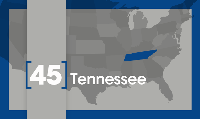 Let’s start with the positives. Tennessee is known for its vibrant music scene and low cost of living, ranking seventh nationally. Now for the negatives… The Volunteer State ranks 45th or lower for dental habits, overall well-being and financial savviness, dropping the state toward the bottom of our list.