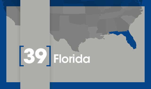 Ah, the Sunshine State. A home to beautiful beaches and resorts, which could contribute to residents having a sunny outlook on their overall well-being. But warm weather can only do so much. The state receives low rankings for safety and crime (46th), dental habits (42nd) and best oral health (42nd).