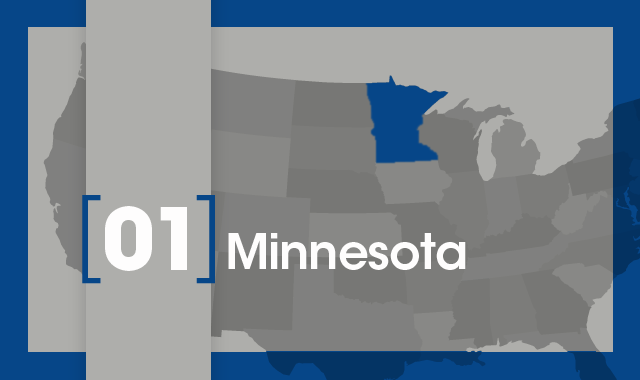 Well done Connecticut: The New England state moved from 15th place in our 2015 rankings, to the prestigious 2017 silver medal. Ranking fifth in median income, the state has the third-lowest crime ranking in the country. Additionally, more Constitution State residents visited the dentist in the past year than folks in any other state. Ranking number two in oral health and fourth in education level, the state’s big downside is its price tag: Connecticut has the fourth-highest cost of living in the United States.