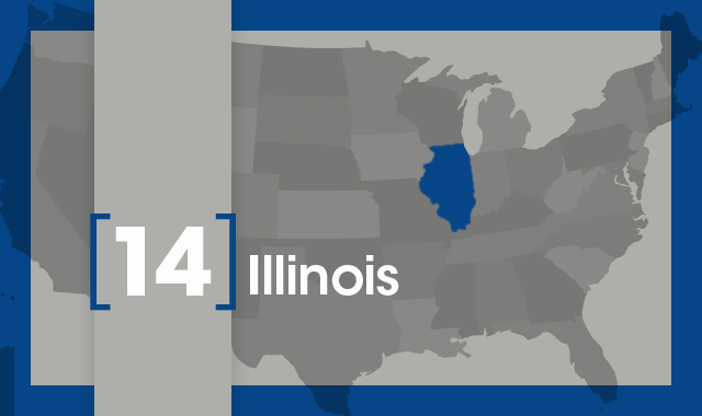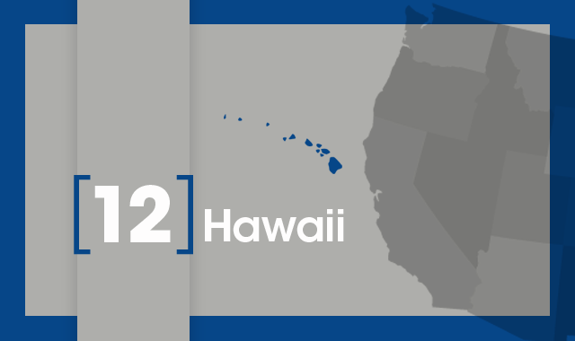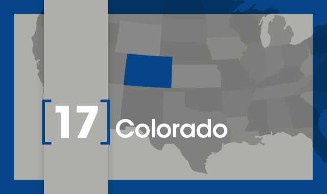 High cost of living and poor overall oral health push Colorado down the icy slopes to 17th on the list. However, with high median income and education levels, and a high ranking of overall well-being (11th, third and third of 50, respectively), Colorado boasts a below-average number of Broncos that are uninsured. And hey, we hear the scenery is breathtaking.