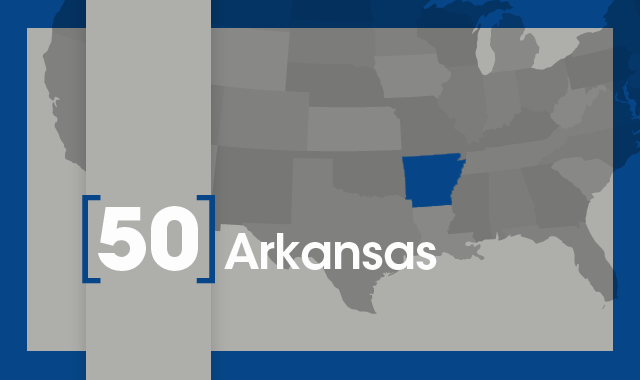 The good news? Arkansas is one of the cheapest states to live in, ranking fourth in cost of living. The bad news? Pretty much everything else… The Natural State comes in dead last for best oral health, safety and crime, and financial savviness, and ranks 49th in median income and overall well-being. At least you can still take pride in your national parks!