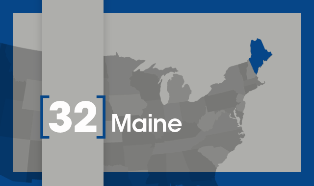 Over the last two years, Maine dropped from number 25 in our rankings to number 32. Why? Well, for starters, their overall well-being ranking dropped from 14 to 30. They also dropped in number of people who visited the dentist. However, the residents of the Pine Tree States have other things to be glad about (in addition to, you know, living in one of the most beautiful places in the world): Maine ranks in the top 10 in terms of safety, and its education and financial savviness rankings are respectable at 22. Unfortunately, those facts are coupled with a bottom-three finish in dental habits.