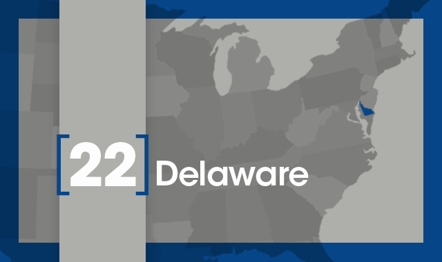 As the first state, Delaware might find its position at number 22 disappointing-but fear not Delawarites (Delawarians? Delawarans? Who can know?), your state still ranks in the top 10 of lowest number of uninsured! Plus, it’s in the top 10 percent for safety and crime, but ranks 33 in cost of living. It’s a mixture of positive and negative factors that affect residents of this original colony.