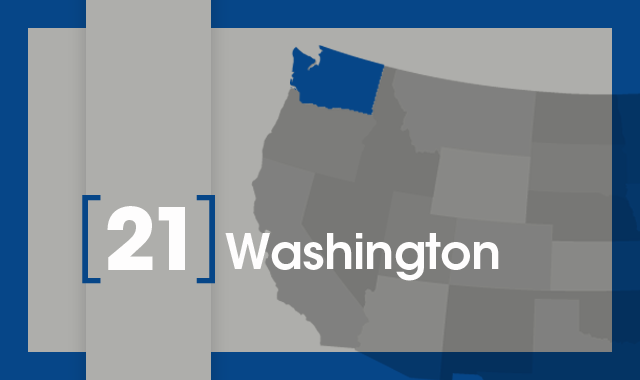 Although Virginia skulks at the end of the alphabet, it’s near the top of our list. The Mother of Presidents might also be becoming the mother of dentists, after its eighth-place ranking! Virginia's high percentage of uninsured and high cost of living may be the cause for the 22nd-place finish in overall well-being; however, high median income means plenty of money for tooth care, and Virginia finished 14th for visits to the dentist and second for best oral health.