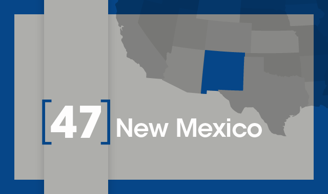 New Mexico may be known as the Land of Enchantment, but we’re not being fooled by these numbers. The state earns poor rankings for median income (45th), percent of people on Medicaid (50th) and financial savviness (49th). On the bright side, New Mexico ranks as one of the safer states, coming in 17th place.