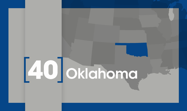 Though the Cavs and the Indians have given Ohioans reasons to hope (the less one thinks about the Bengals and Browns, the better), Ohio doesn't fare very well in our rankings. That is because the Buckeye state ranks very low (38) in percentage of the population on Medicaid and even lower (42) in overall well-being. The state does demonstrate excellent oral health at #8, but factors like lower median income and education level pull down Ohio’s overall ranking.
