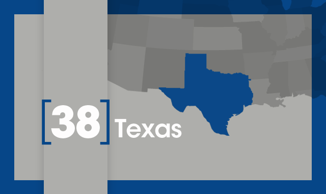 Everything’s bigger in Texas -- except when it comes to the number of people visiting the dentist. The Lone Star State also earns low marks in best oral health (47th) and education (42nd). Fortunately, the home of the Alamo is also home to low cost of living.