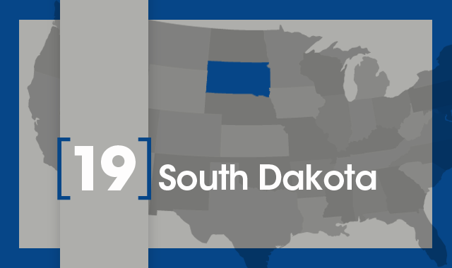 Remaining steady at number 19, North Dakota's southern sister ranks 32nd for education level and 29th for violent crime, both statistics that drove its overall ranking lower. However, Mount Rushmore shouldn't be the only draw for prospective residents: This grassland state ranked ninth in overall well-being and eighth in visits to the dentist, despite its #28 ranking for median income and a below average rank for cost of living (#34).