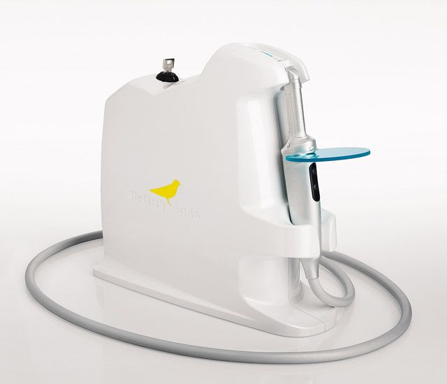 The Canary System is said to be a precise laser-based system with an integrated intraoral camera that detects cracks and caries not seen with other devices. It reportedly is 25 percent more accurate than bitewing radiographs. The Canary System is reportedly accurate to a depth of 5 mm below the tooth surface and ideal for identifying interproximal decay, caries around and beneath the intact margins of restorations and caries under sealants.