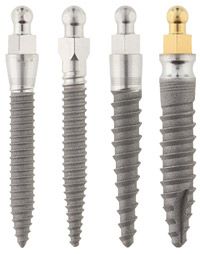3M ESPE MDI mini dental implants3M ESPE’s MDI mini dental implant system is said to be minimally invasive and immediately stabilizes full or partial dentures, often completed without a flap and frequently using the patient’s existing denture. MDIs are designed for stability in bone tissue, which frequently allows immediate loading. Attachment designs are available for custom retention with three retention options as well as attachment designs that forgive up to 30 degrees divergence with no need for an angle correction inventory. 3M ESPE mini dental implants are available in diameters of 1.8 mm, 2.1 mm, 2.4 mm and 2.9 mm at lengths of 10 mm, 13 mm, 15 mm and 18 mm to accommodate a wide range of patient needs.
