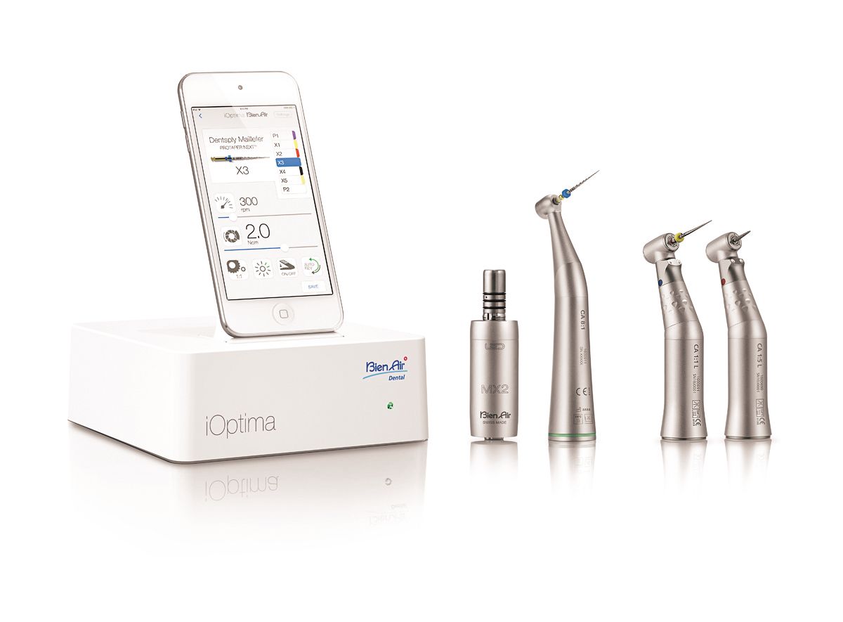 These two devices are electric handpiece systems. The iOptima is for restorative and endo, while the iChiropro is for implants. What makes these handpiece systems so amazing is that they interface with an iPod (iOptima) and an iPad (iChiropro). The ability to interface with a portable computing platform means that the handpieces are totally programmable. They are run by apps which allows parameters such as torque, rpm speed, etc., to be determined by the manufacturer of a bur, endo file, implant, etc. If a new implant or endo file comes to market, those products and their specifications are added to the app. When that product is selected in the app, those parameters are controlled by the iPod or iPad and everything runs exactly as the manufacturer specified. The ability to have a continually updated handpiece is “outside the box” thinking and makes these handpieces game changers.