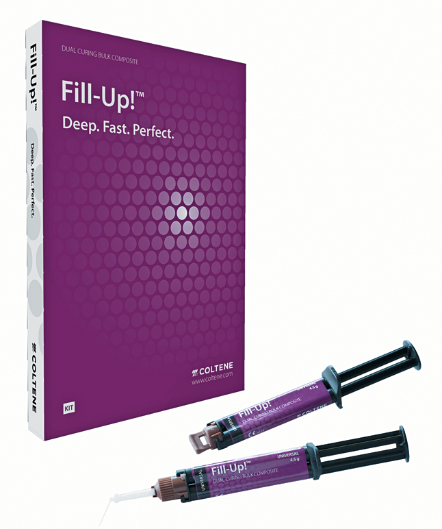 Into this category comes Fill-Up! from Coltene. It is a combination self-cure and light-cure composite. The material being automixed is delivered via a syringe. It handles well with no sensitivity in my hands.