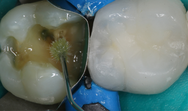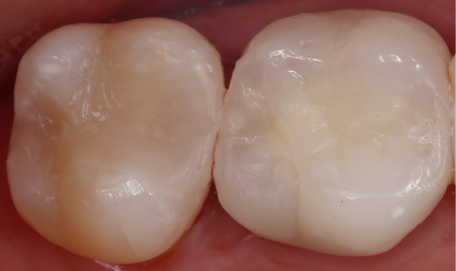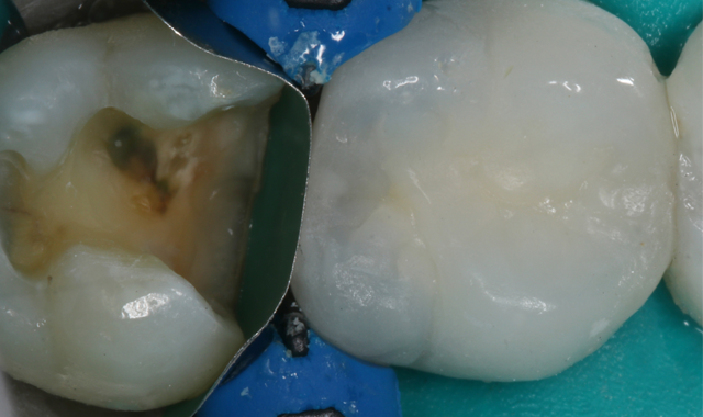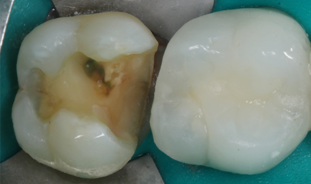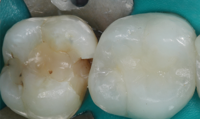 A 50-year-old female patient presented for replacement of a fracture and decay in an existing composite restoration (Figs. 1-2). While crowns or onlays would be the typical treatment of choice in our office, the patient will need to put off receiving indirect restorations for a couple years. It was decided that due to the depth of the existing restorations and the recurrent caries present, it would be wisest to perform caries control for the teeth.