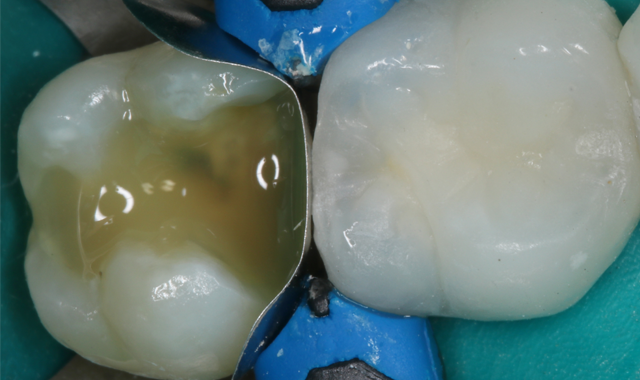 The direct composite restorative of choice in my office is Tetric EvoFlow® Bulk Fill and Tetric EvoCeram® Bulk Fill. When treating cavities of this size, the composite material makes placement much more efficient and predictable while still offering a high level of esthetics.