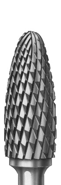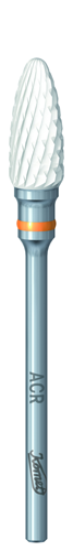 A new polisher, the 9486 silicon-impregnated, nonwoven abrasive buff (Fig. 4) has been recently added to the kit and is especially effective on bite splints and bruxism appliances. Also included are the K251ACR and K79GSQ ceramic cutters (Figs. 5-6). With its ovoid shape, the H251E carbide is excellent option as well (Fig. 7). The system offers a range of options to address all acrylic-polishing needs, and it eliminates the need for an extra piece of machinery in the office. The resultant smooth surfaces minimize plaque adhesion and its sequelae.