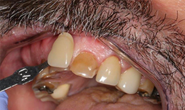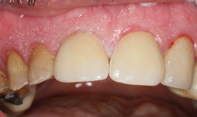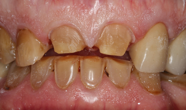 I also sent pre-op photos of the un-prepped and prepped teeth along with the corresponding shade tabs for enamel and stump abutment shades to help my dental lab technician evaluate the case pre-operatively in order to lessen potential issues such as the restorations being too translucent or too opaque (Figs. 4-5).