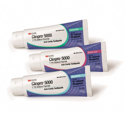 3M ESPE’s Clinpro 5000 delivers fluoride, strengthens enamel and reverses early white spot lesions. The 1.1% Sodium Fluoride Anti-Cavity Toothpaste features a proprietary tri-calcium phosphate ingredient.