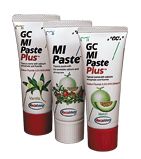 MI Paste and MI Paste Plus from GC America contains the active ingredient RECALDENT™ (CPP-ACP), a special milk-derived phosphopeptide that binds calcium and phosphate to the teeth’s surface, plaque and surrounding soft tissue. MI Paste is a water-based, sugar-free créme that is applied directly to the teeth’s surface or oral cavities. MI Paste with RECALDENT™ (CPP-ACP) helps release calcium and phosphate to restore the oral mineral imbalances that cause the loss of teeth-strengthening by replacing minerals, improving saliva flow and fluoride uptake and soothing sensitive surfaces. Visit mi-paste.com.