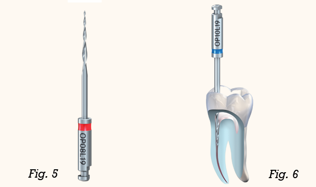 With a pecking motion, in which the files are briefly moved up and down the canal, enlarge the coronal third of the root canal with the Komet® Opener, which removes bacteria to avoid transport to the apex by subsequently used instruments. The Opener also reduces curvature of the root canal to eliminate strain on subsequent mechanical files such as the F6 SkyTaper.