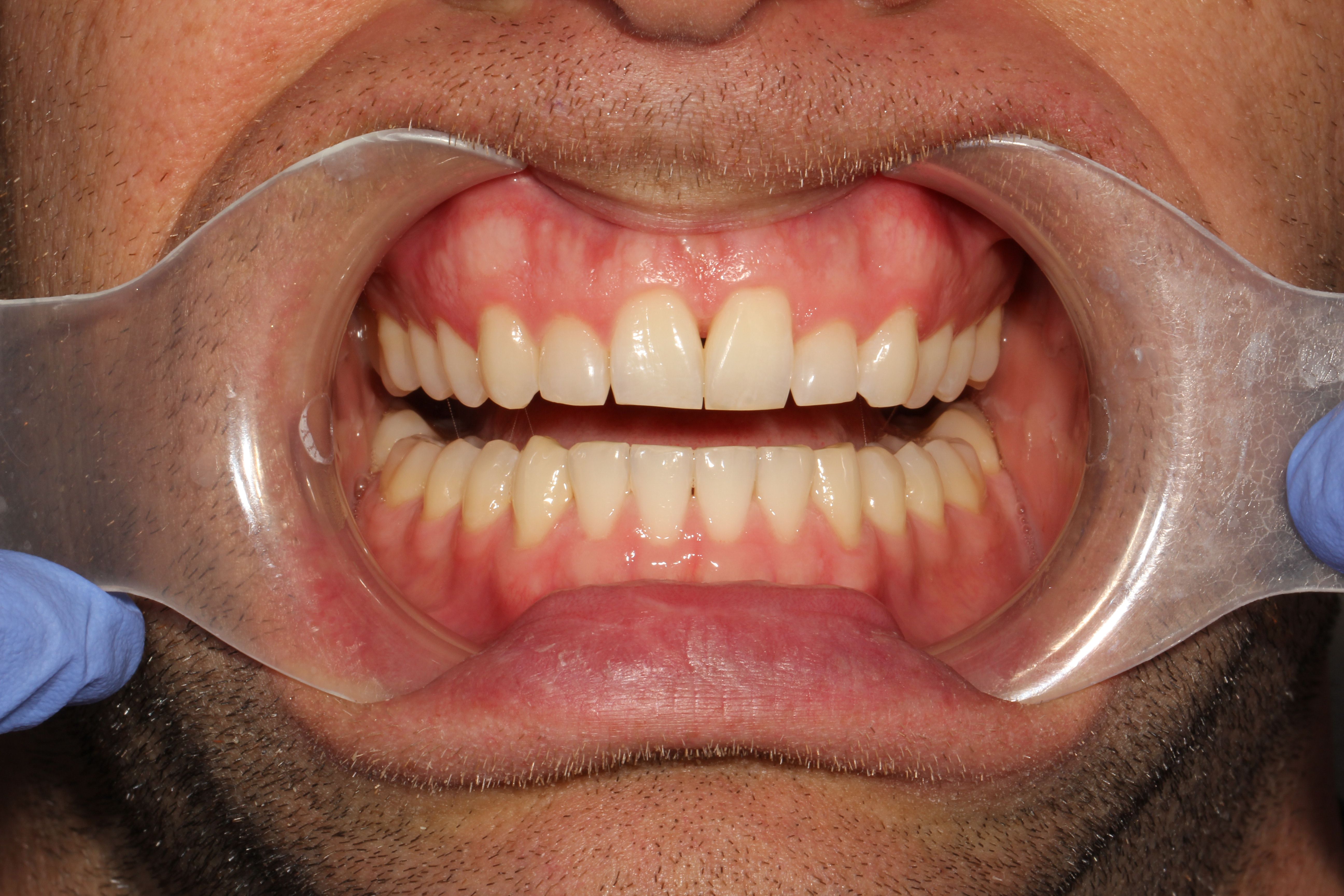 A 32-year-old male patient presented with a chief complaint of rotated tooth 9 and uneven anterior gingival heights. The patient was not interested in traditional orthodontic brackets and wires and decided on clear aligner therapy due to its esthetic and hygienic advantagesUpon reviewing the process with the patient, the decision was made to initiate ClearCorrect clear aligner therapy. The patient consented and the appropriate impressions and photos were submitted to ClearCorrect for a treatment setup.