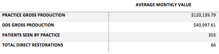 Seasonality was measured by comparing national monthly averages to the average for the year. The evaluated values include key performance indicators (KPIs) that reflect the business of the practice, including practice gross production, dentist gross production, patients seen by practice and total number of direct restorations. The average values for 2015 are below.