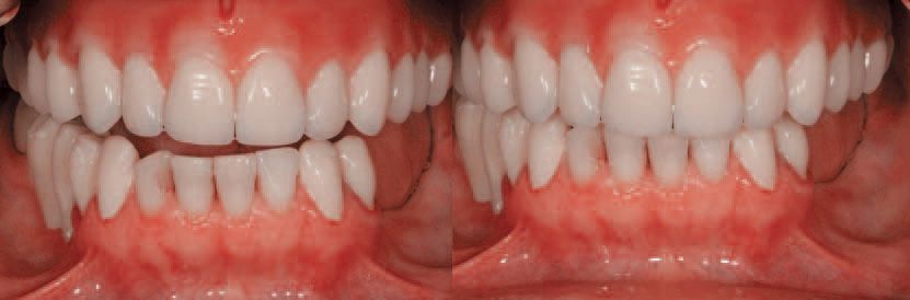 Fig. 7 Patient opts for provisional crowns to accommodatefor the plane correction and the F/ denture was fabricated to completion using the ideal plane.