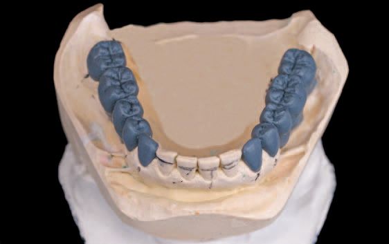 With minimal foresight into planning future implant or partial denture restorations by placing teeth on a non-restored area, you begin to suggest the corrective process and illustrate to the clinician and/or patient your technical value and the reasoning behind treatment suggestions (Fig. 3). In some instances, fabricating a removable segment in the edentulous area rather than luting to model makes for an easy transition to a provisional appliance.