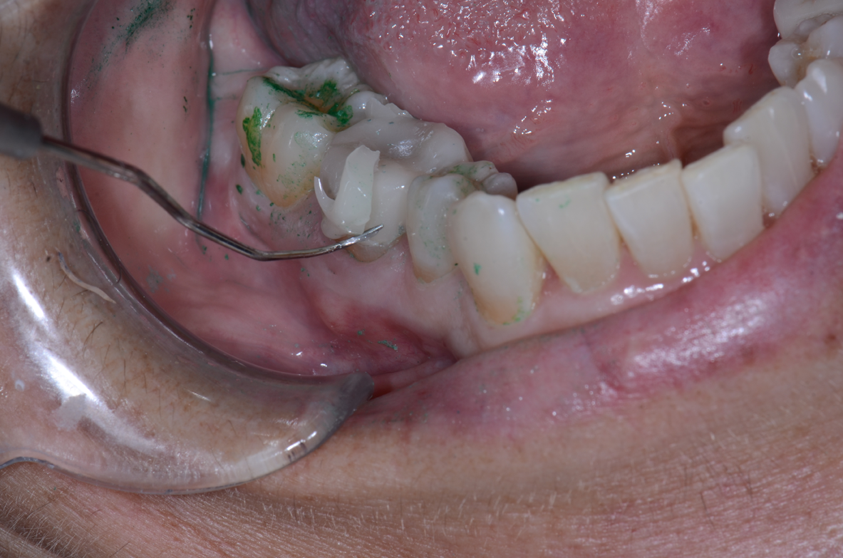 Successful temporary cementation is measured by accomplishing a specific set of goals. Ideally, the temporary will stay securely in place until the patient returns for the seat appointment, and it can be easily removed at that time. The temporary cement (which should be translucent) creates an exquisite seal of the prepared tooth and dentinal tubules. This is essential for preventing sensitivity and bacterial infiltration. Leakage creates irritation to the pulp of the tooth and runs the risk of making the patient uncomfortable.