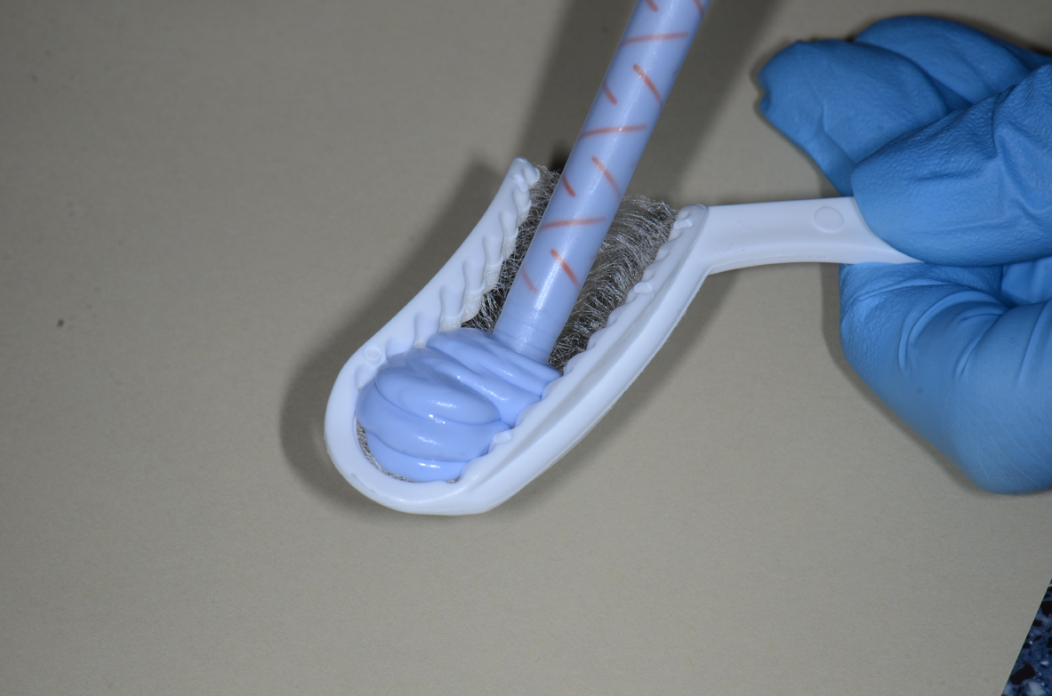 1. Following completion and polishing of the provisional, (if desired) clean the prep with a prep scrub containing 2% Chlorhexidine or Glutaraldehyde and HEMA (Fig. 7).